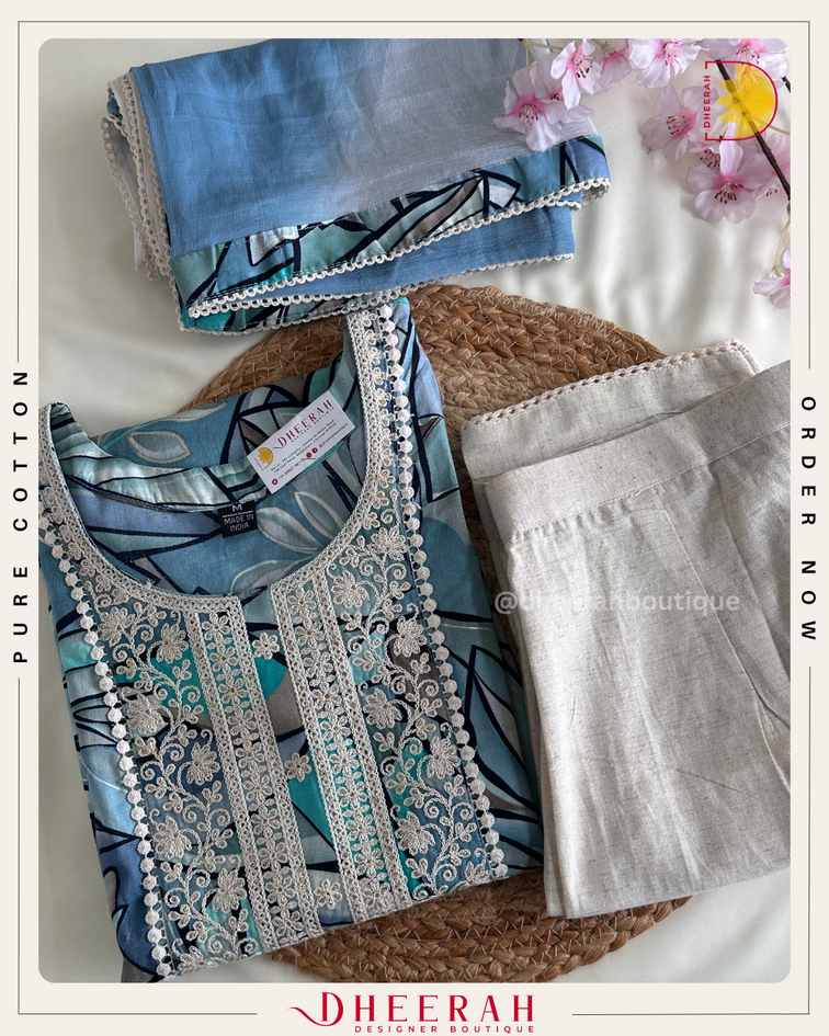 Blue Premium Cotton Kurta Set