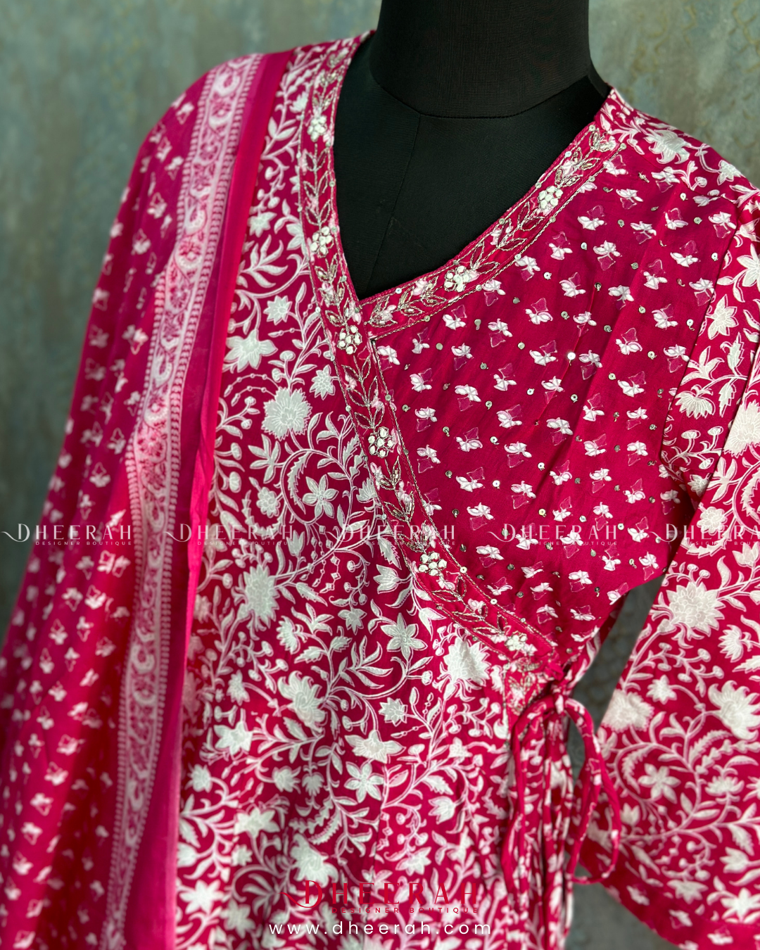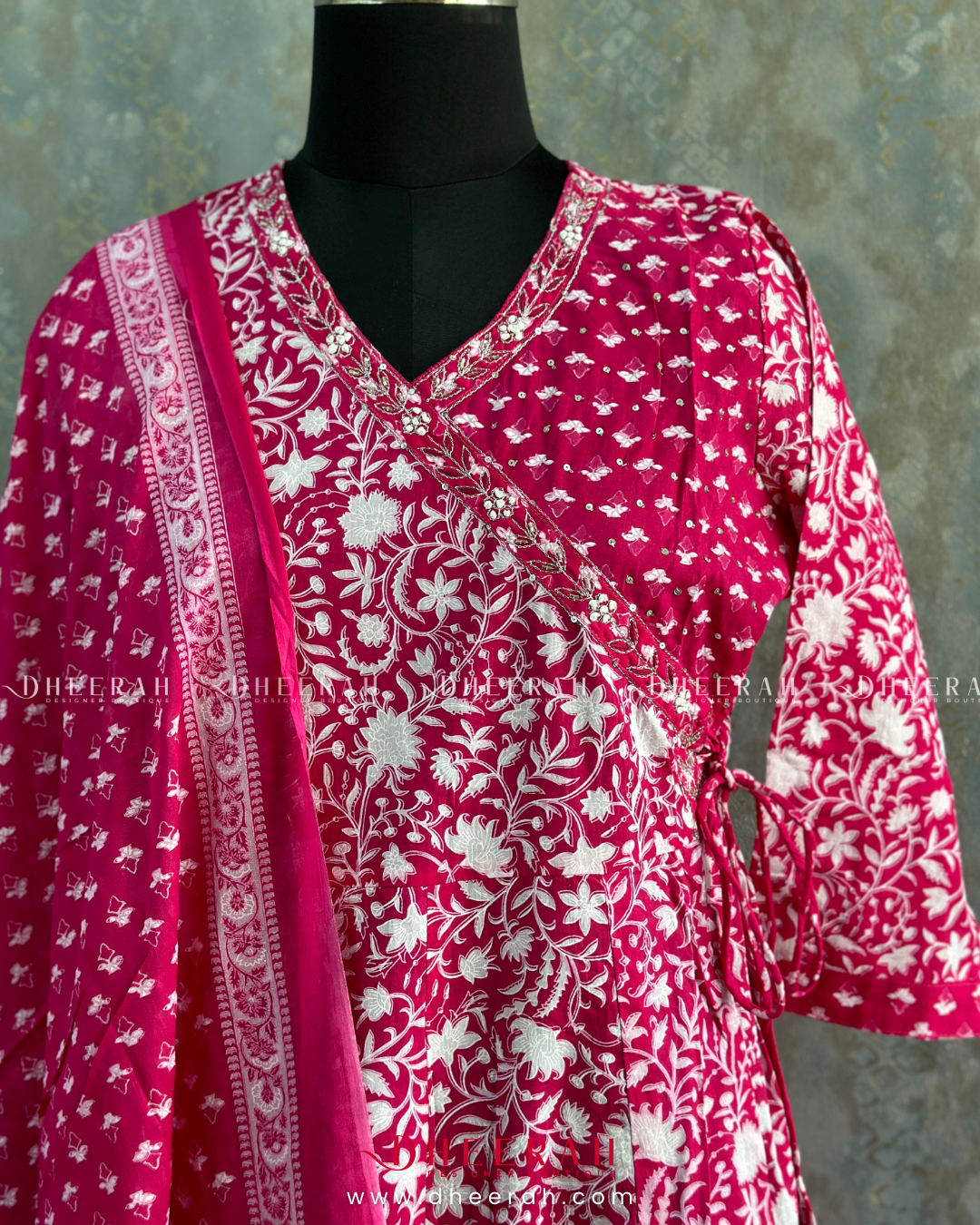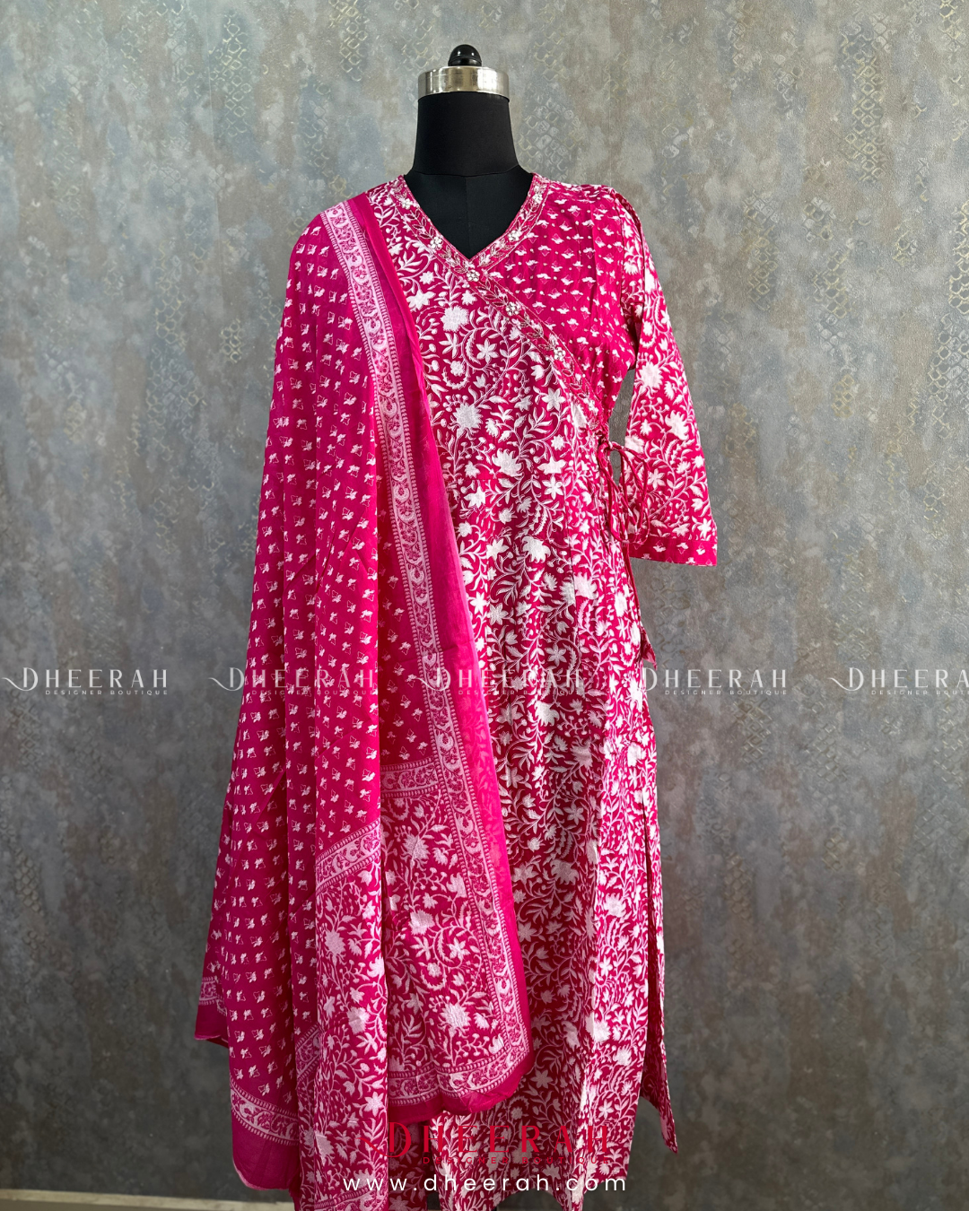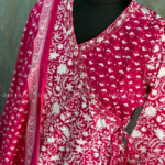This pure cotton Angarakha-style Anarkali is adorned with exquisite handwork detailing on the neckline, offering a blend of tradition and elegance. Paired with comfortable cotton trousers and a coordinating cotton dupatta, this ensemble is perfect for both casual and festive events.