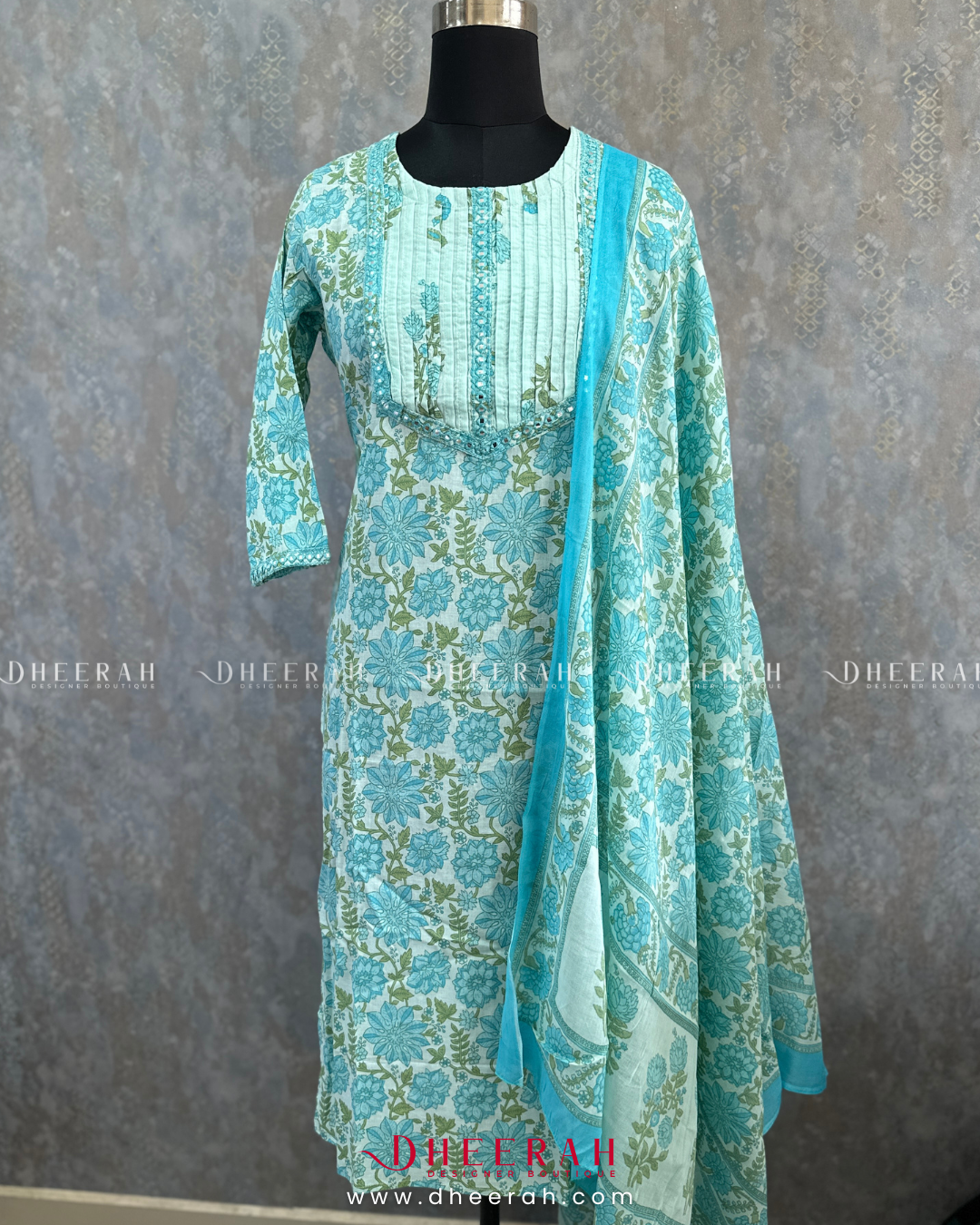 Designed for all-day comfort, this premium cotton kurta features a V-neck and elbow sleeves with a tailored fit. Paired with a straight bottom, it offers a stylish and breathable look for everyday wear.