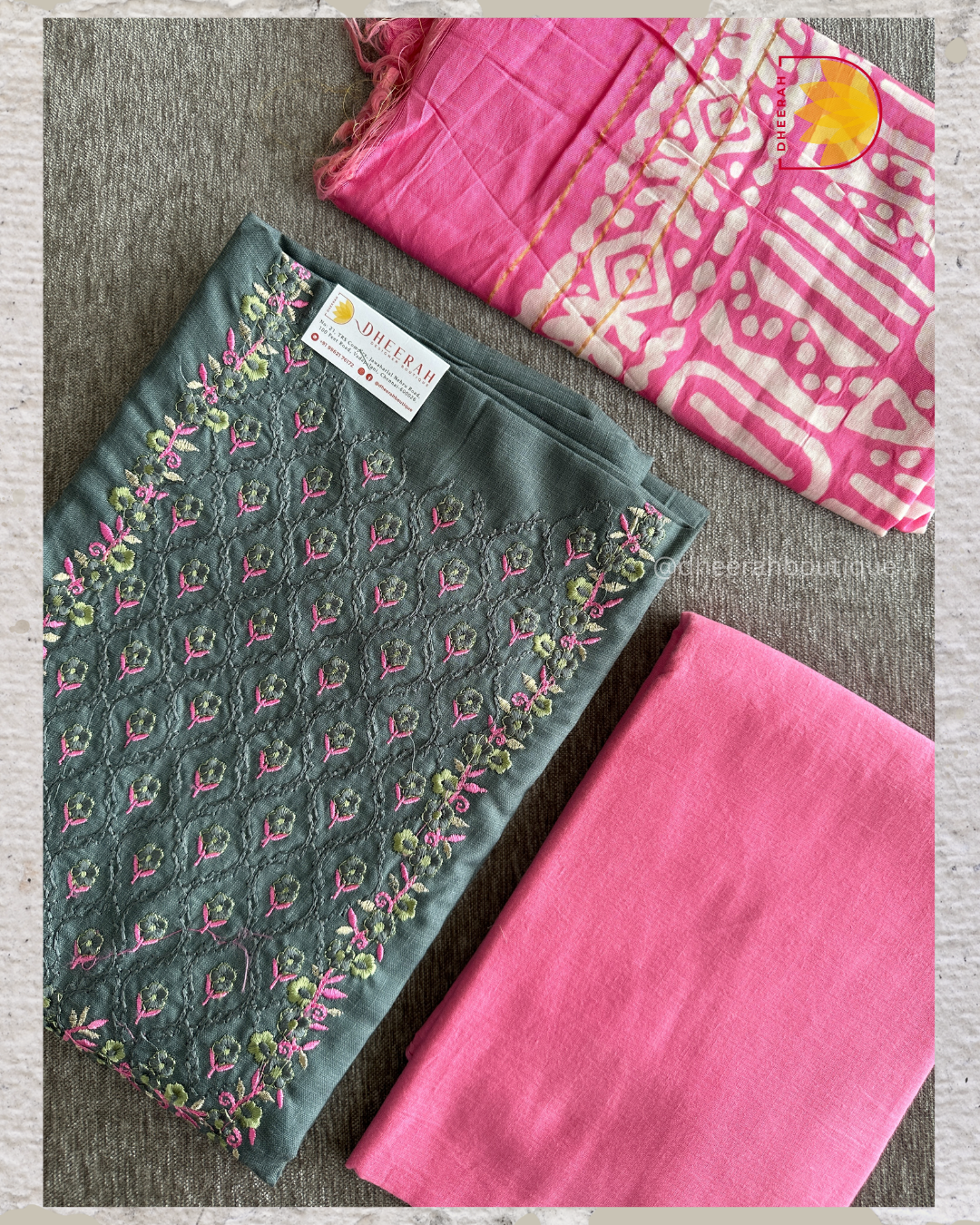ndulge in the refined beauty of the Khatan Silk Elegance Ensemble. This luxurious set features rich Khatan silk fabric paired with a comfortable pure cotton bottom and a soft silk dupatta.
