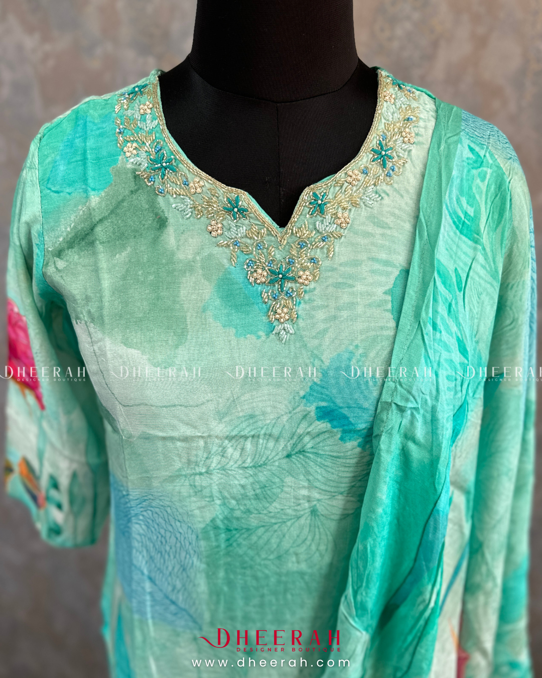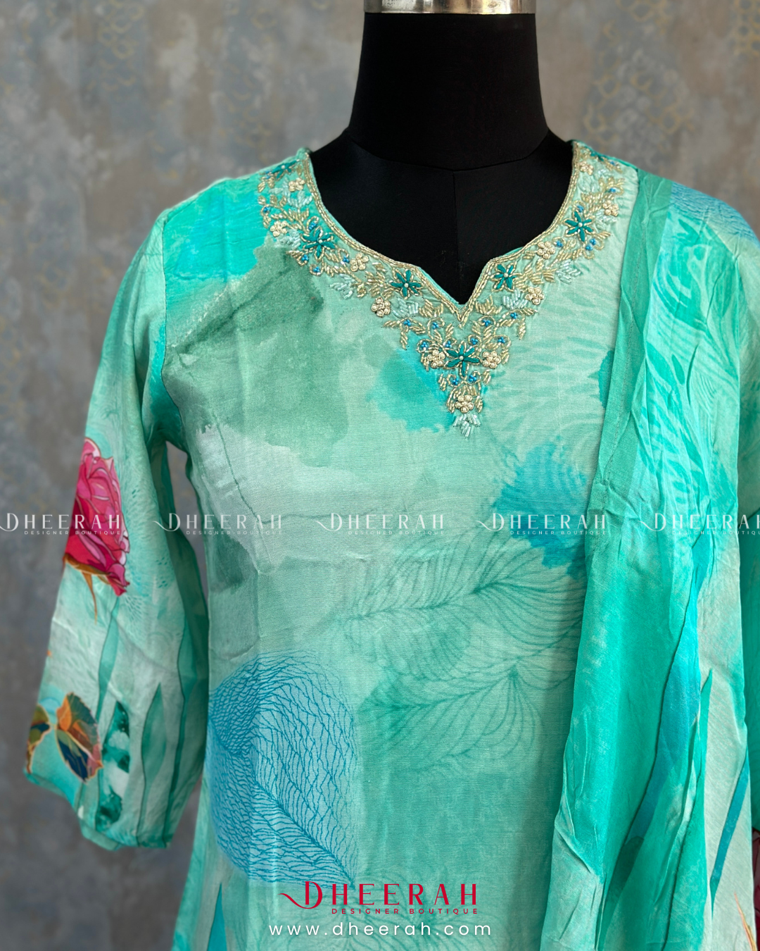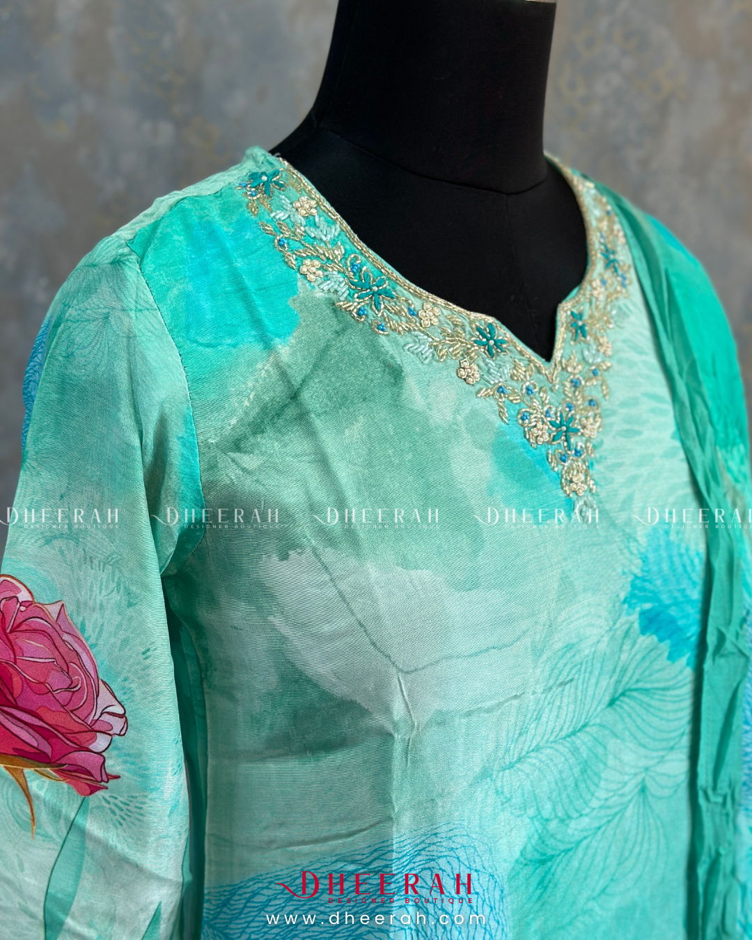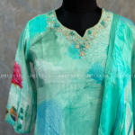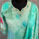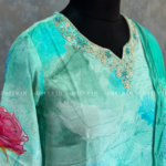 Elevate your style with this pure crepe silk kurti featuring intricate digital prints and zardosi, sequins detailing on the neckline. Paired with a matching digital printed dupatta, it’s the perfect blend of elegance and tradition.